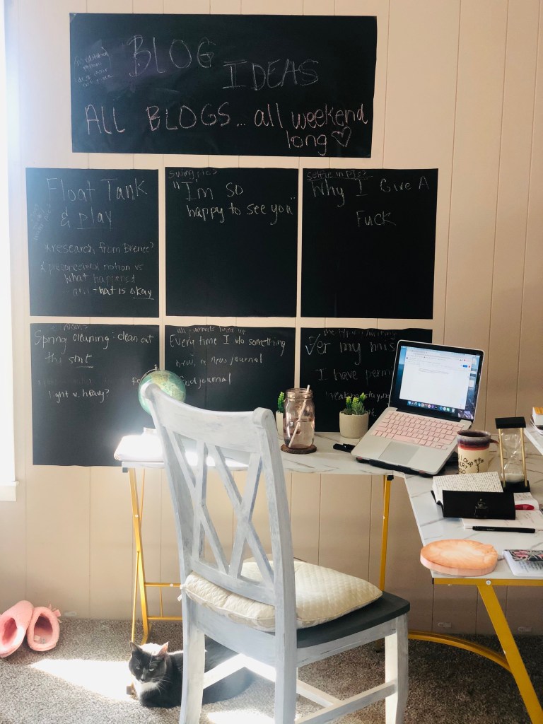 All week long, I was so inspired with blog ideas. I probably received twenty ideas over the course of this week and I embraced the possibility of an eventless weekend by scheduling a date with my computer. On the chalkboard over my desk, I wrote “BLOG IDEAS: ALL BLOGS…. All weekend long!” Underneath the title banner, I organized six of the ideas I felt most confident in, and brainstormed their content. I set myself up for success on Friday and cleaned the entire house (scrubbing baseboards and all!), washed, dried, and folded all the laundry, spent some quality time with friends, and prepared some feel-good, healthy snacks to nibble on over the weekend.
